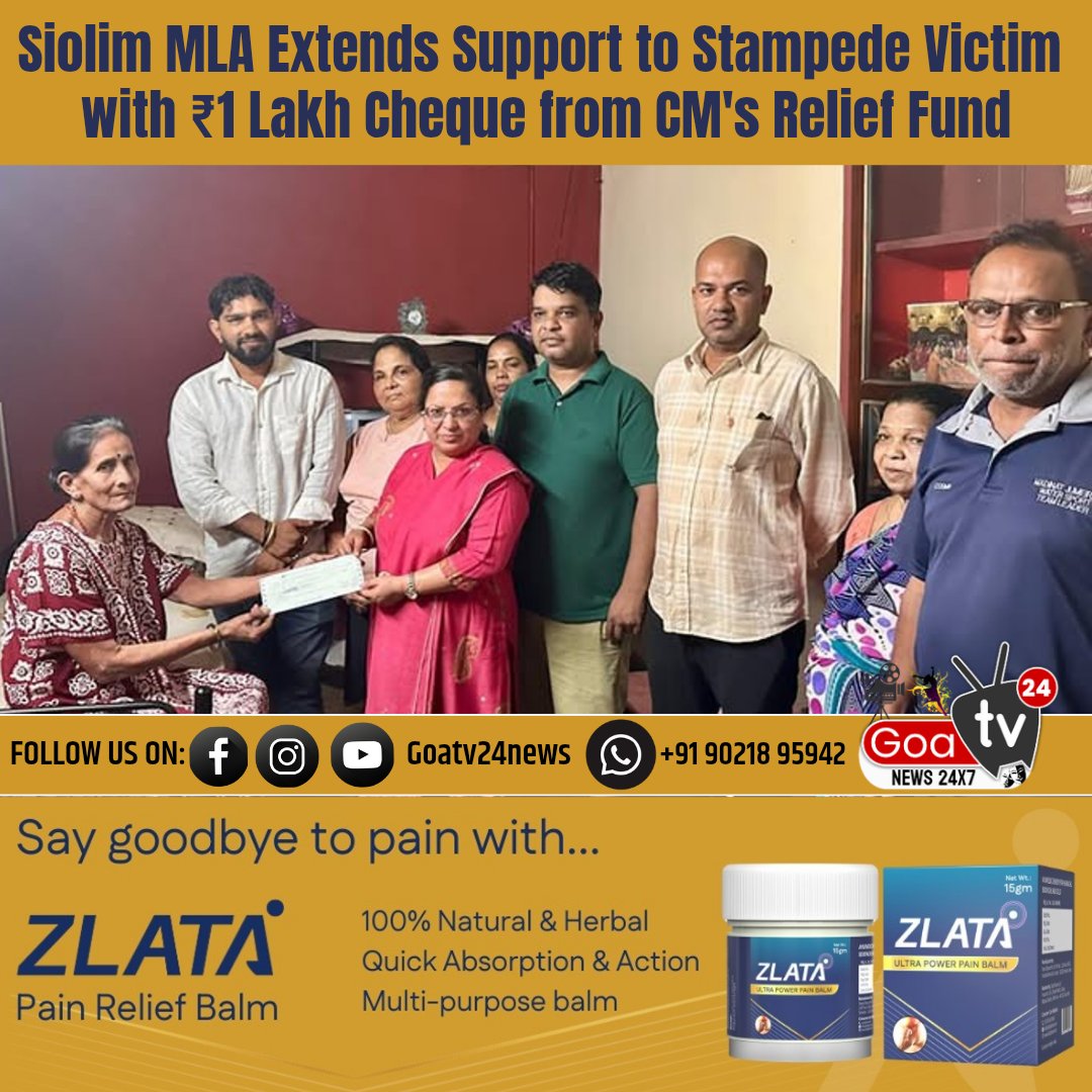 Siolim MLA Extends Support to Stampede Victim with ₹1 Lakh Cheque from CM’s Relief Fund