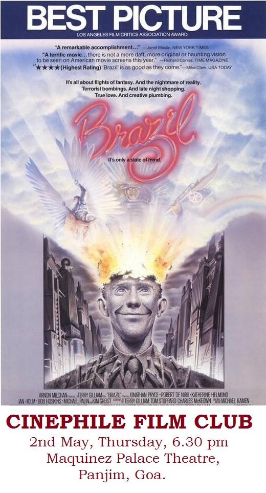 Greetings from the Cinephile Film Club. This Thursday, 2nd May 6.30 pm, Sachin Chatte will host the screening of Brazil (1985, English,130 mins).
