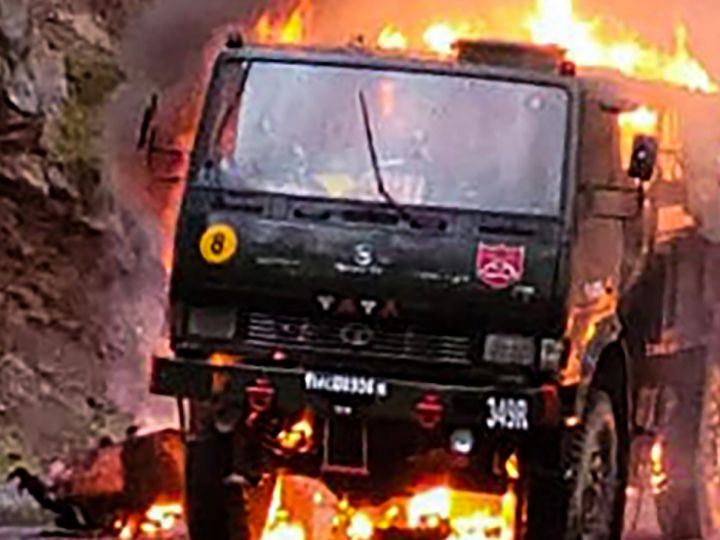 जम्मू-काश्मीरमधील पुंछमध्ये हवाई दलाच्या ताफ्यावर दहशतवादी हल्ला.