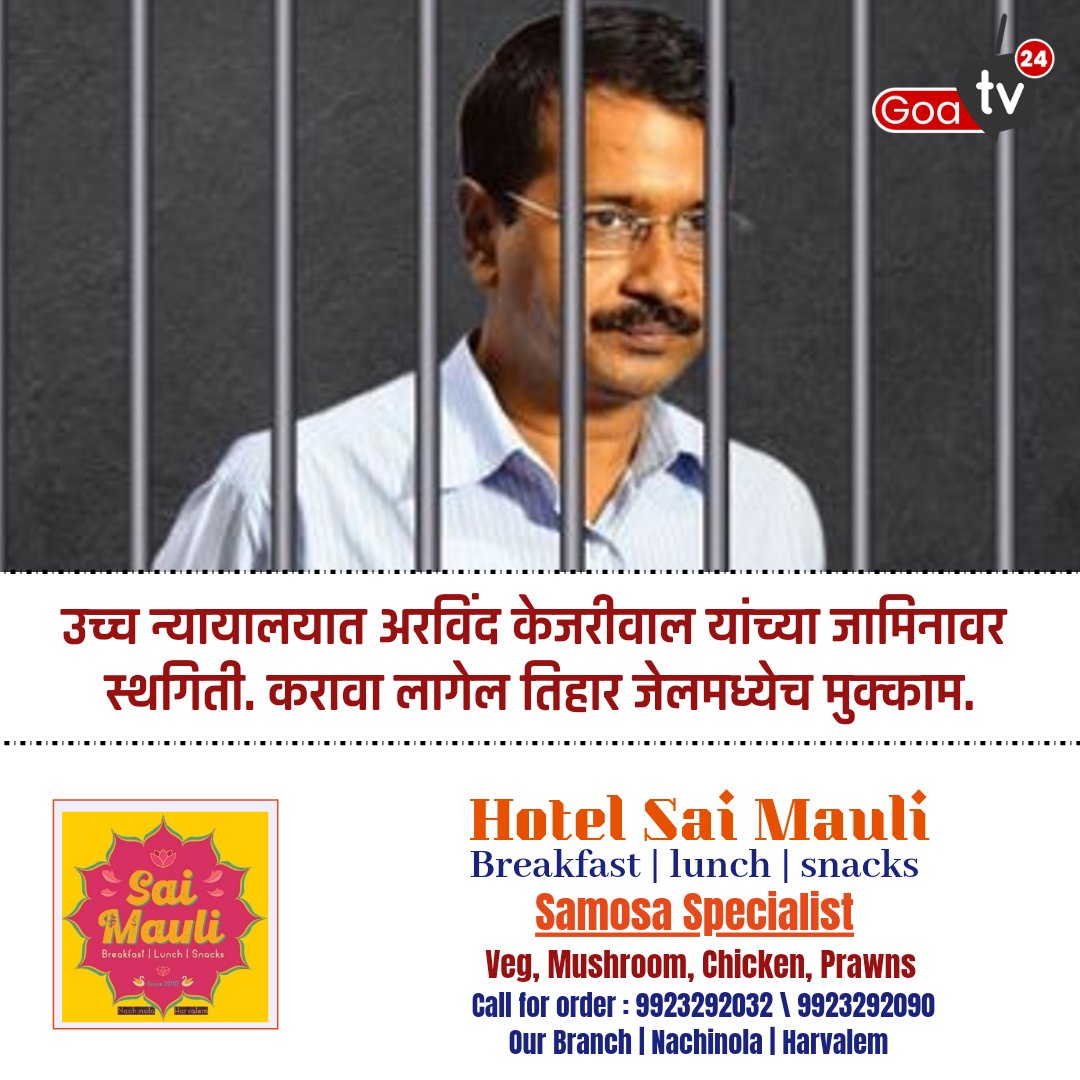 उच्च न्यायालयात अरविंद केजरीवाल यांच्या जामिनावर स्थगिती. करावा लागेल तिहार जेलमध्ये मुक्काम.