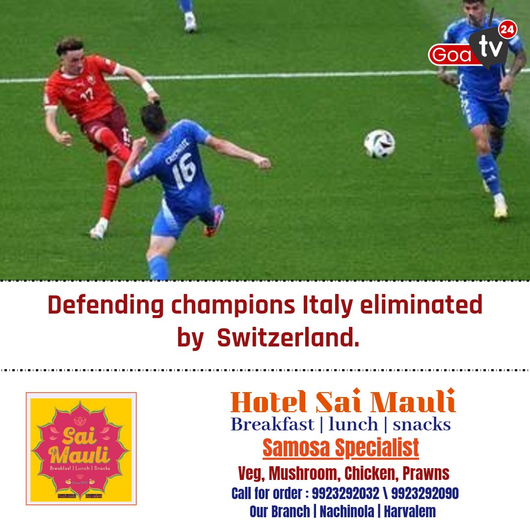 Defending champion Italy crashed out of the Euro 2024 after losing to Switzerland 2-0 in the last 16 on Saturday.
