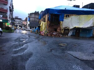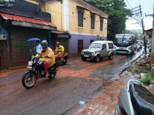 The black toppings of the road was completely washed out opposite Portuguese Era house which had collapsed in the early monsoon days next to Geeta Bakery and opposite Salvador Gardens.