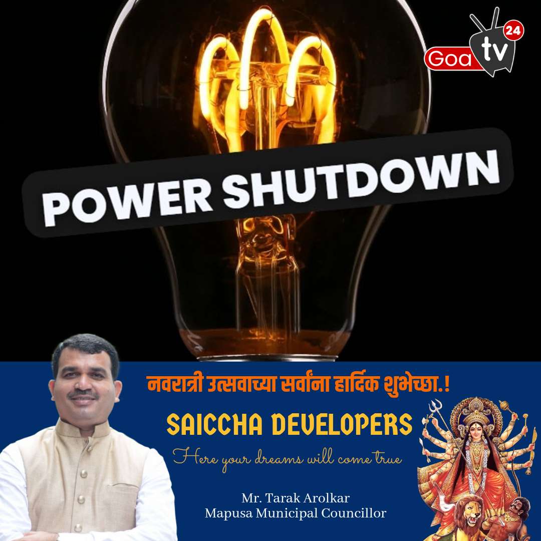 A power shut down has been arranged on October 10, 2024 from 8.30 am to 02.00 pm on 11KV Baga feeder, 11KV Royal Enfield, 11KV Dharwadkar Feeder from Nagoa station to carry out maintenance works to the below mention areas. Affected areas are Sautawaddo, Tito’s lane, Baga beach, River side, Retreat house baga, Naik waddo, Dongarpur, Dharwadkar and surrounding areas.