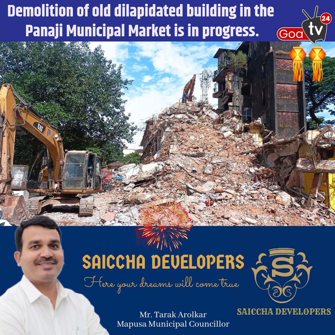 Demolition of old dilapidated building in the Panaji Municipal Market is in progress.