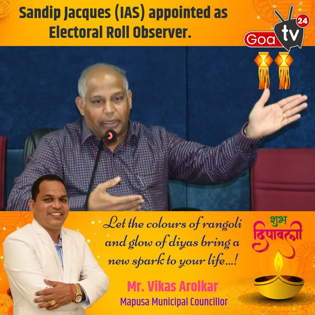 The Election Commission of India, New Delhi has appointed Shri. Sandip Jacques (IAS), Secretary (Revenue) and Divisional Commissioner, Goa, as Electoral Roll Observer for Goa State during the Current Special Summary Revision of Electoral Roll with regards to January 1, 2025 as the qualifying date,