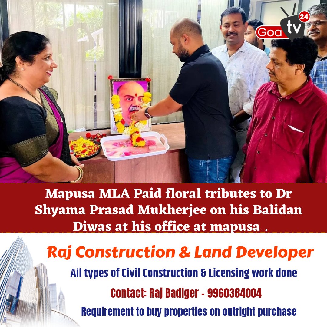 Mapusa MLA Paid floral tributes to Dr Shyama Prasad Mukherjee on his Balidan Diwas at his office at mapusa .
