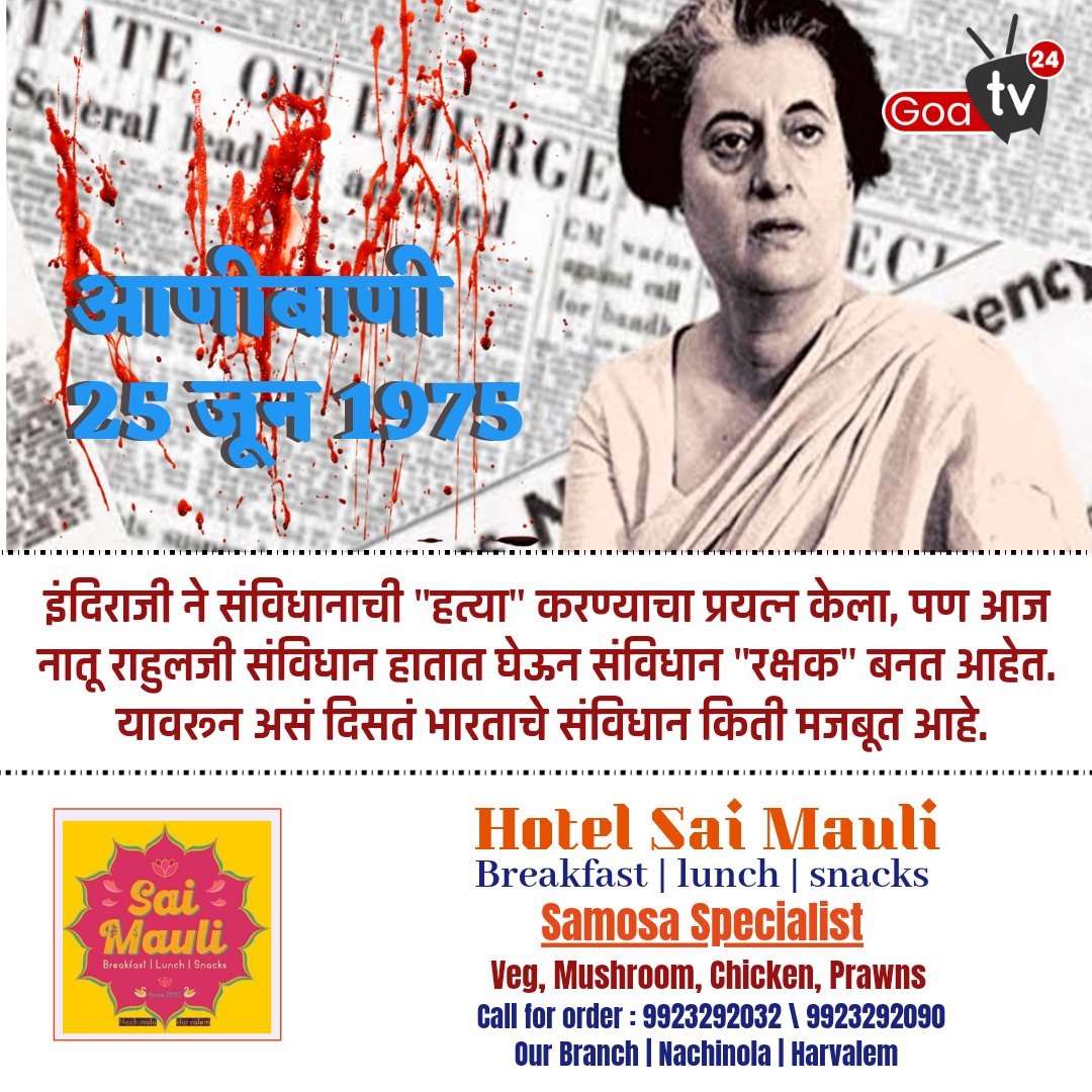इंदिराजी ने संविधानाची हत्या करण्याचा प्रयत्न केला, पण आज नातू राहुलजी संविधान हातात घेऊन संविधान रक्षक बनत आहेत. यावरून असं दिसतं भारताचे संविधान किती मजबूत आहे.
