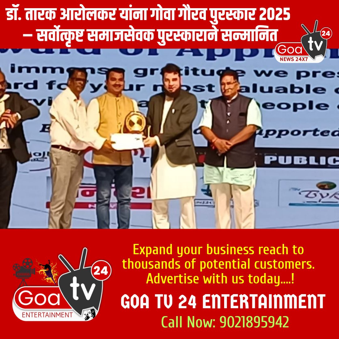 डॉ. तारक आरोलकर यांना गोवा गौरव पुरस्कार २०२५ – सर्वोत्कृष्ट समाजसेवक पुरस्काराने सन्मानित
