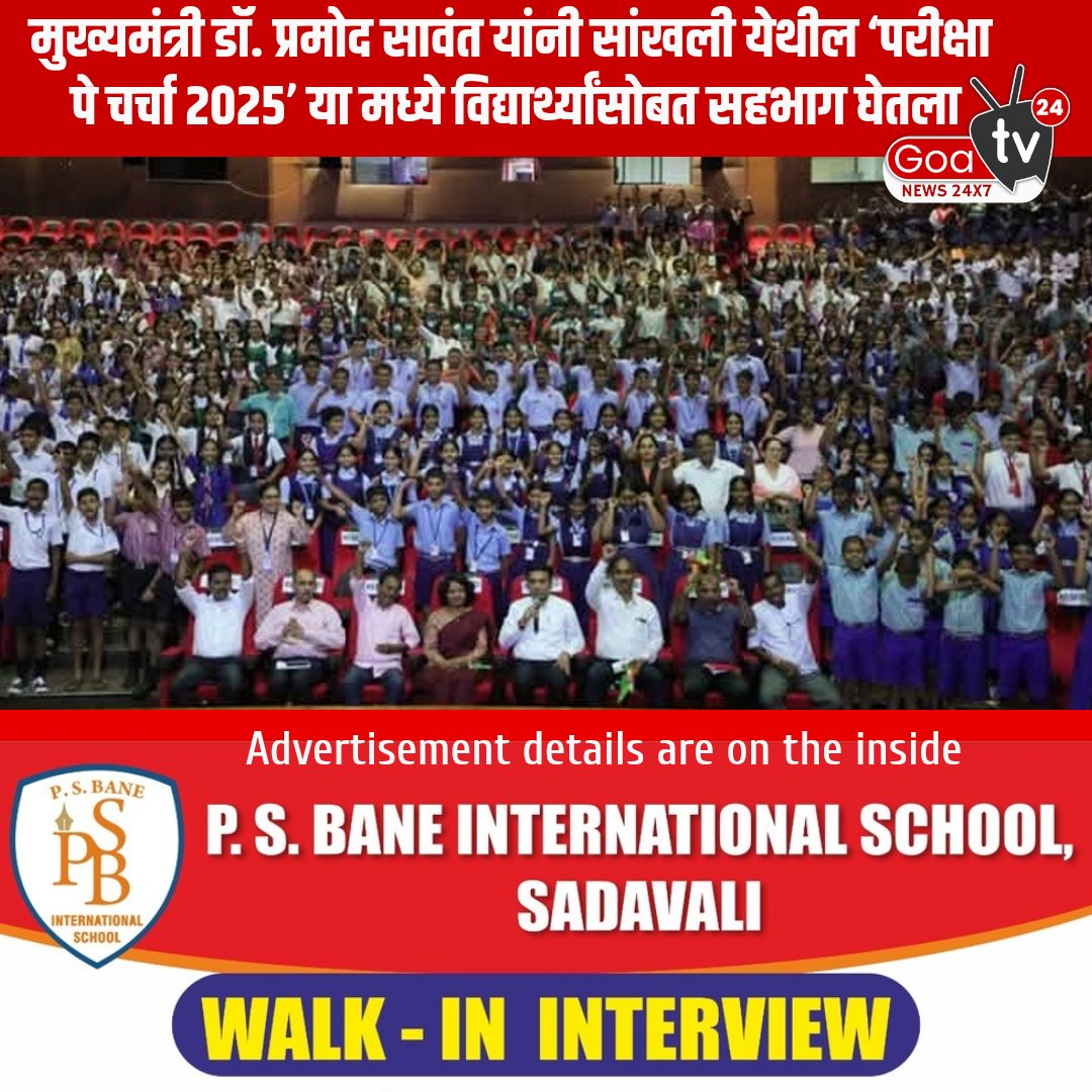 मुख्यमंत्री डॉ. प्रमोद सावंत यांनी सांखली येथील ‘परीक्षा पे चर्चा 2025’ या मध्ये विद्यार्थ्यांसोबत सहभाग घेतला