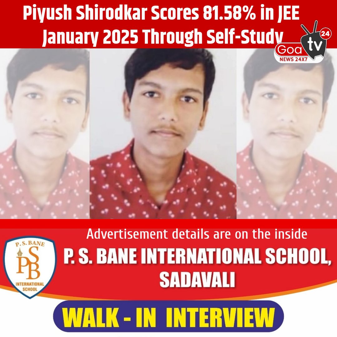 Piyush Shirodkar Scores 81.58% in JEE January 2025 Through Self-Study
